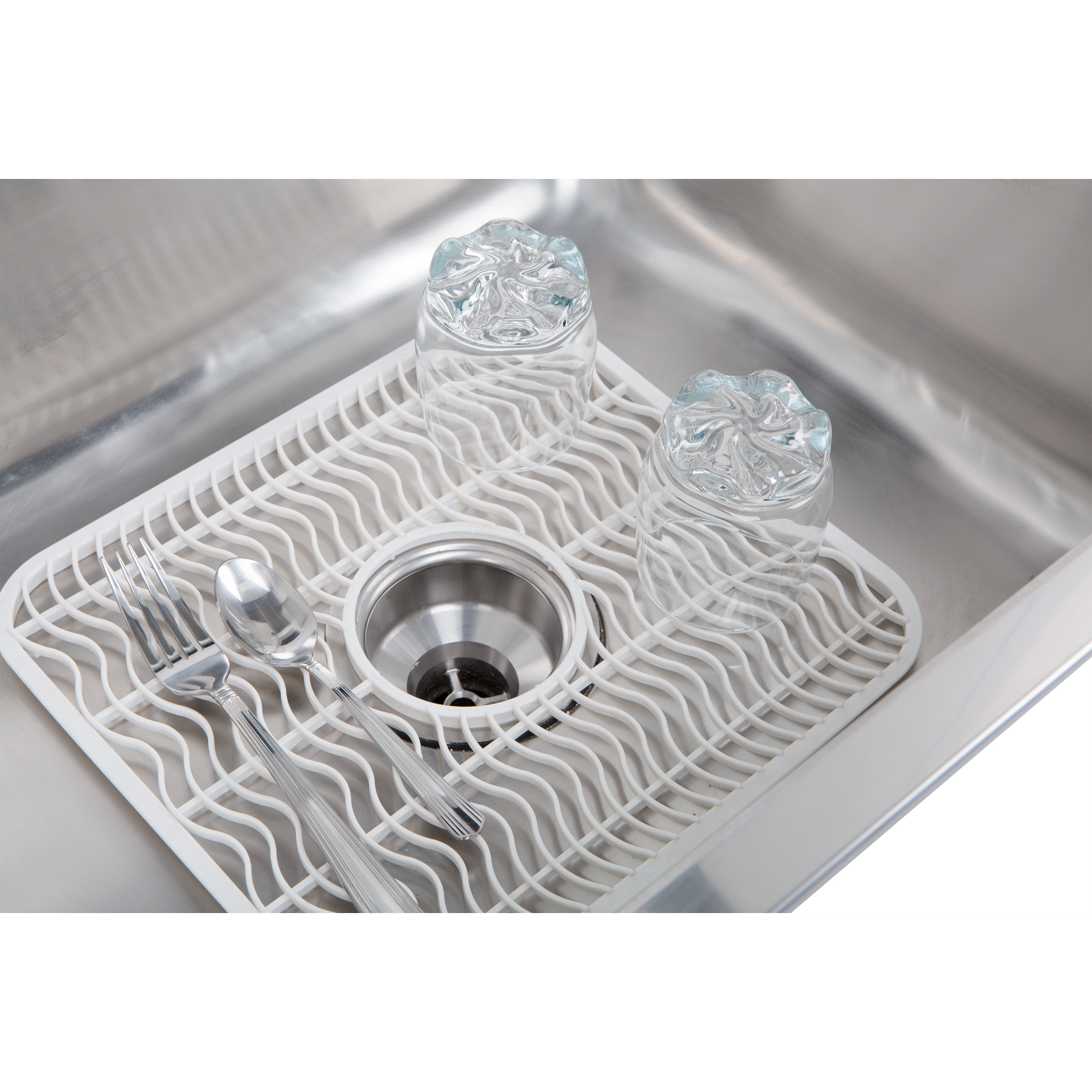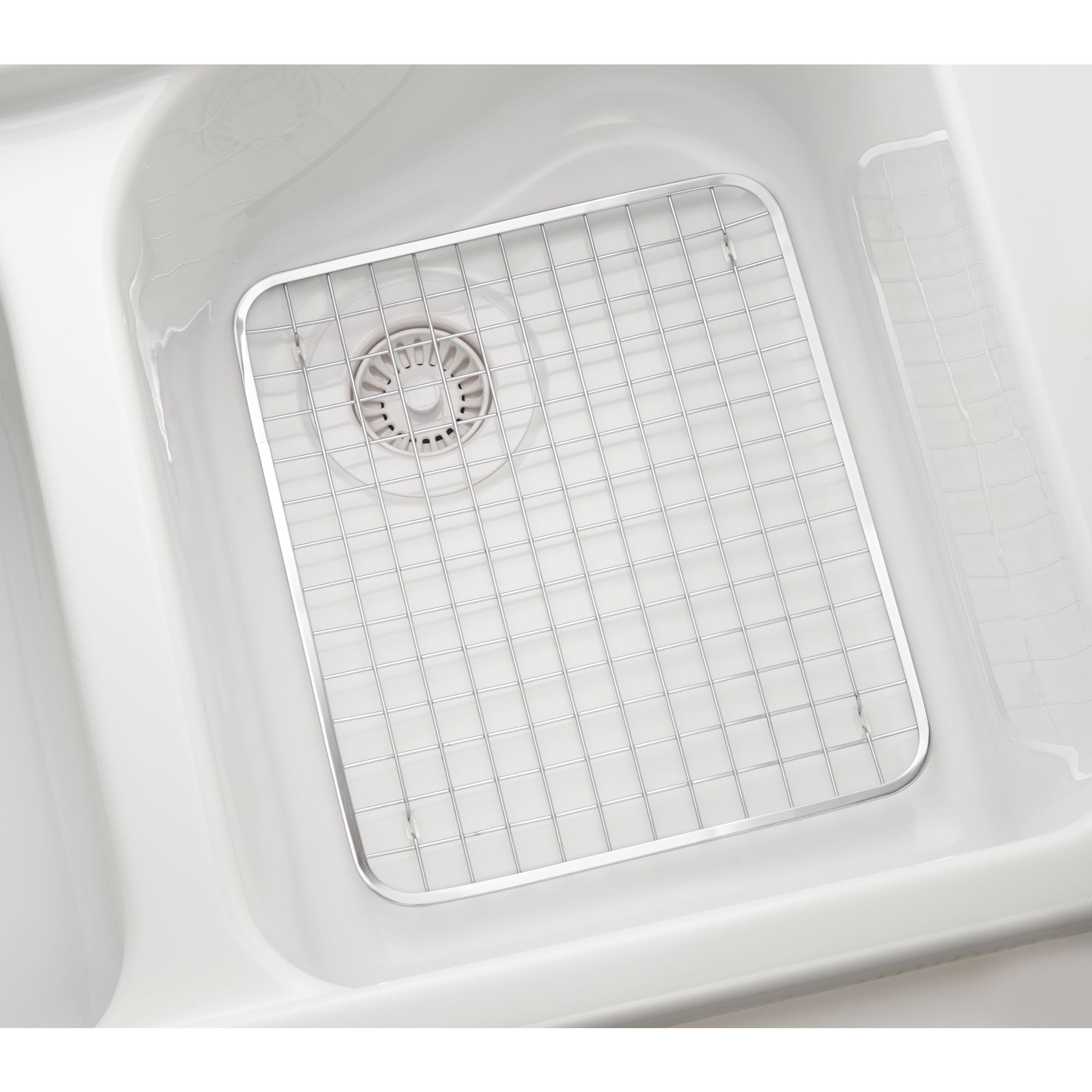 InterDesign Gia Kitchen Sink Protector Grid with Drain Hole - Pack of 4, Regular. BLANCO 221011 DIAMOND Stainless Steel Kitchen Sink Grid - BLANCO Sink Protector. The simple metal kitchen sink grid sits on the bottom of your sink on non-skid protective feet to prevent damage, allowing water to drain below the dishes. Blanco's stainless steel grids are custom designed to protect the finish of your kitchen sink from dishes and utensils. Multi-purpose kitchen sink protector grid:... OPEN DESIGN WITH NON-SKID FEET: Open design allows... We would like to introduce you to the Better Houseware Sink Protector Grid. Available in